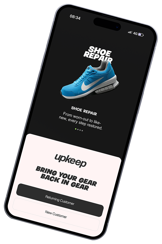 Say goodbye to long repair queues. With Upkeep, get premium shoe restoration and cleaning services with just a few taps. From sneakers to heels we collect, repair, and return them looking brand new.